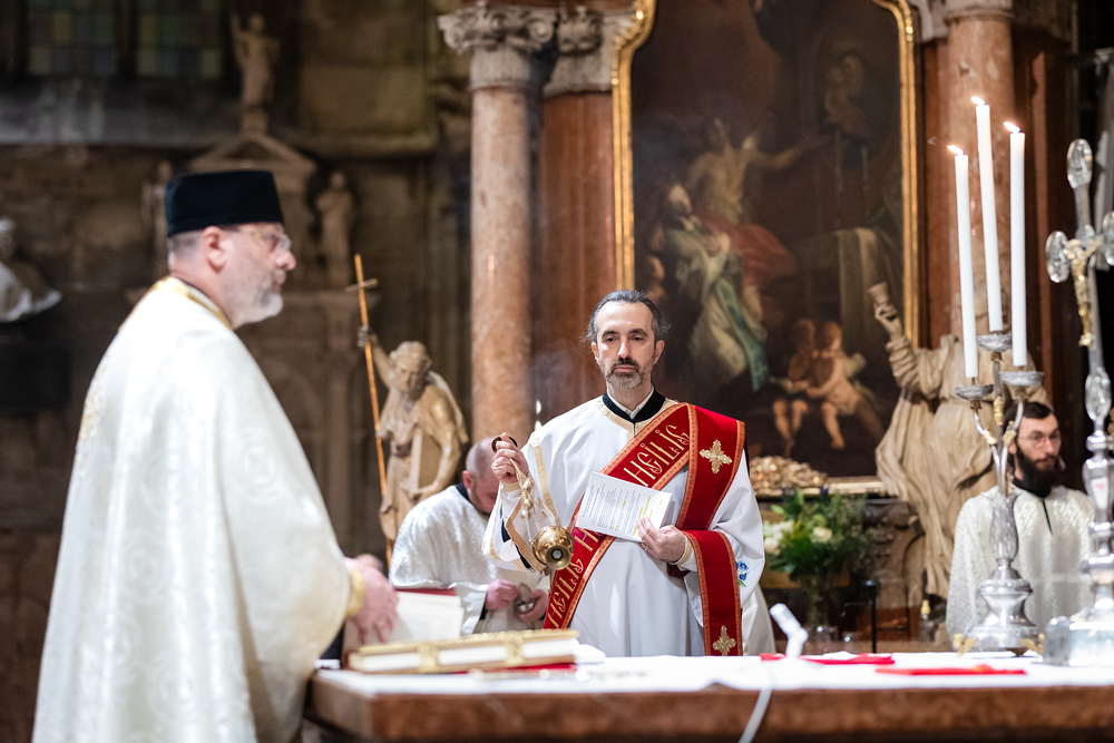 Der Wiener Erzbischof, für den angesichts seines 80. Geburtstags im Jänner demnächst ein Nachfolger ernannt werden dürfte, ist seit drei Jahrzehnten auch Ordinarius und somit Letztverantwortlicher der mit Rom verbundenen Kirchen. Deren Vertreter, angeführt vom zuständigen Generalvikar Yuriy Kolasa, würdigten Schönborns Verdienste bei einer vom Ostkirchenordinariat organisierten Feier im byzantinischen Ritus - der Göttlichen Liturgie des heiligen Johannes Chrysostomus. Wir waren mit der Kamera dabei.